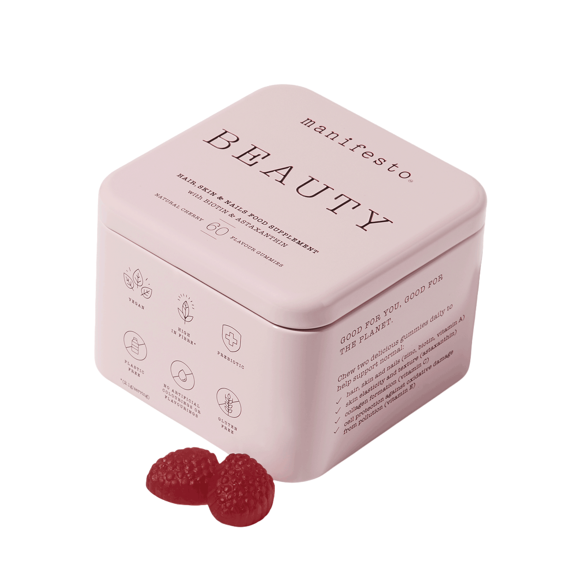 Discover Manifesto Beauty Gummies, a daily supplement formulated to support radiant skin, stronger hair, and healthier nails from within. These vegan-friendly gummies combine essential vitamins and antioxidants to nourish the body and promote natural beauty, making them an easy and delicious addition to your routine.